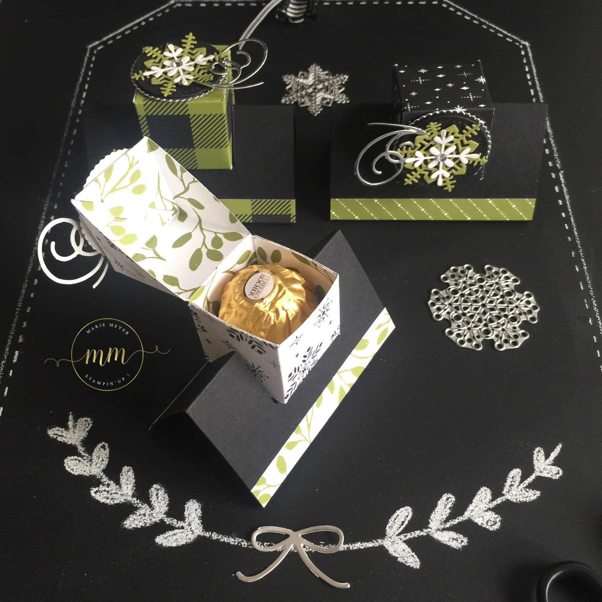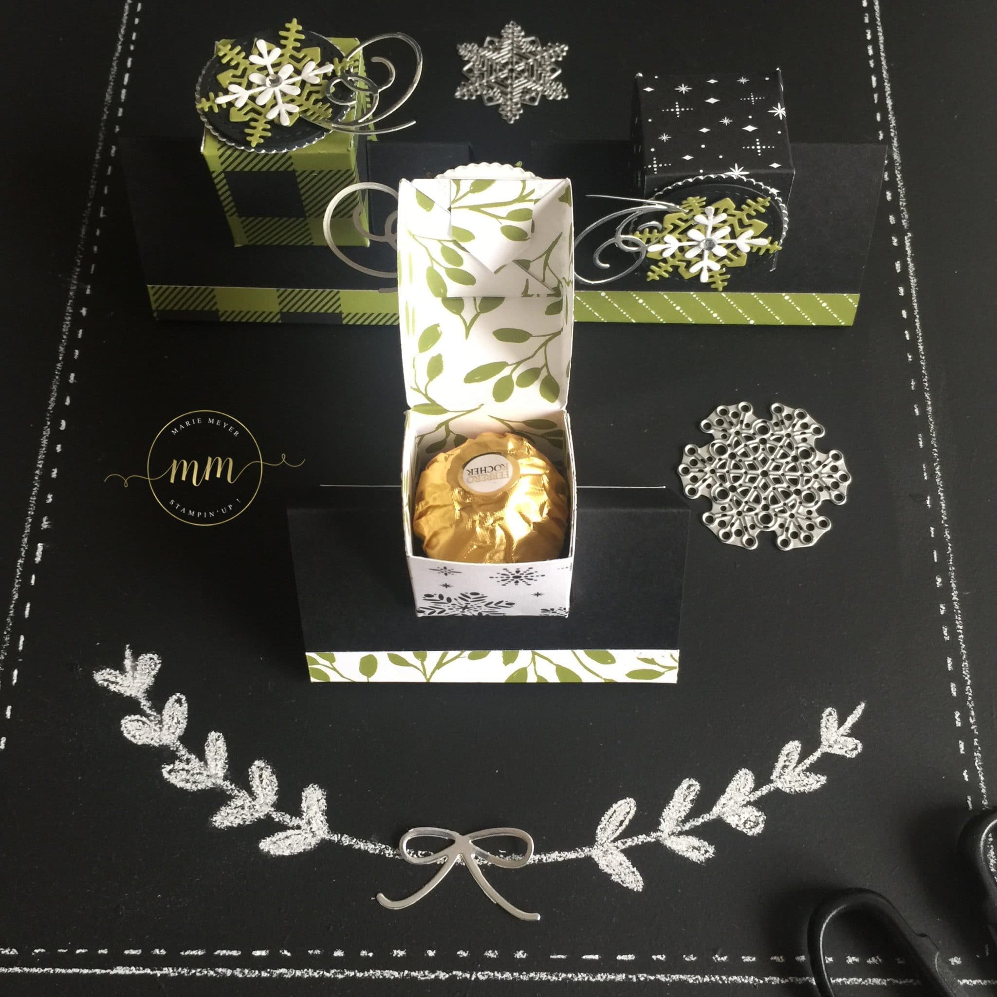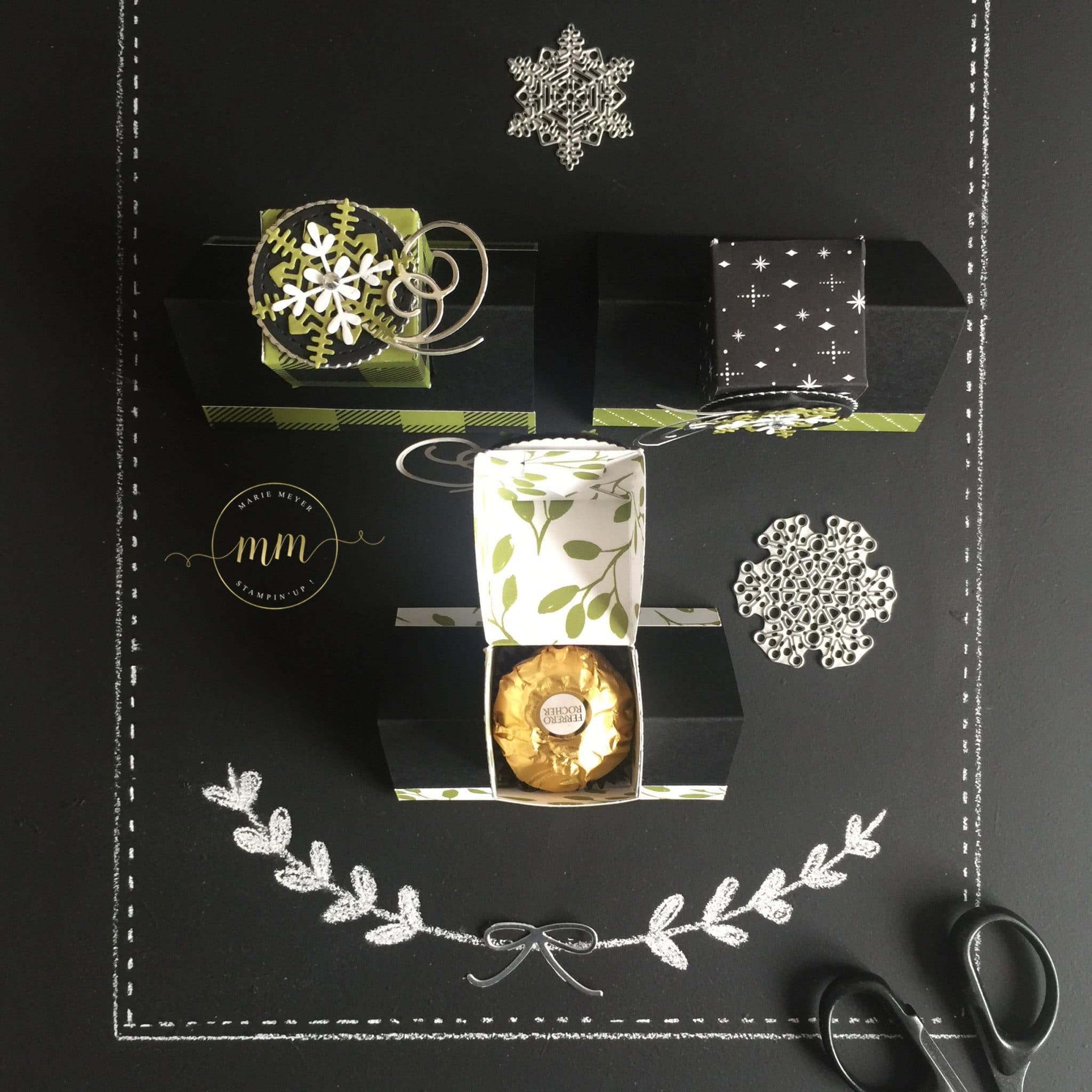 Boîte Ferrero Jolies Fêtes avec son tutoriel, papier de la série Design Jolies Fêtes, Thinlits Flocons virevoltants, Thinlits Superpositions de saison, Framelits Formes à coudres, Framelits Pyramide de cercles par Marie Meyer Stampin up – http://ateliers-scrapbooking.fr/ – Ferrero Box Merry Little Christmas tutorial, Merry Little Christmas Designer Series Paper, Swirly Snowflakes Thinlits, Seasonal Layers Thinlits, Stitched Shapes Framelits, Layering Circle Framelits Ferrero Box Frohes Fest Anteilung, Designerpapier Frohes Fest, Thinlits Formen Flockenreigen, Thinlits Aus jeder Jahreszeit, Framelits Stickmuster, Framelits Lagenweise Kreise