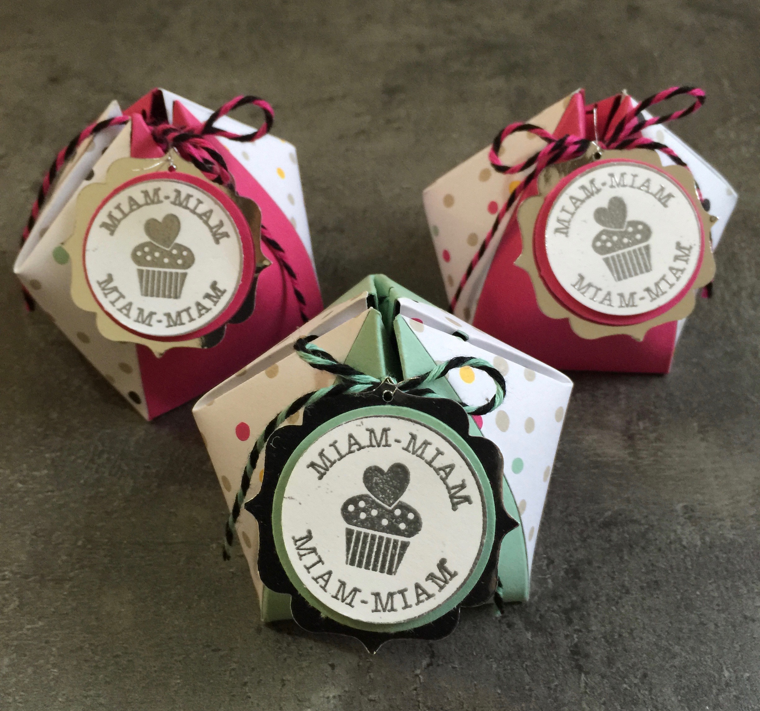Après quelques jours de pause, me revoici sur la toile pour vous proposer des boîtes à gourmandises que j’ai offertes à mes clientes. J’avais envie d’offrir des boîtes à la fois simples et originales. Les voici :