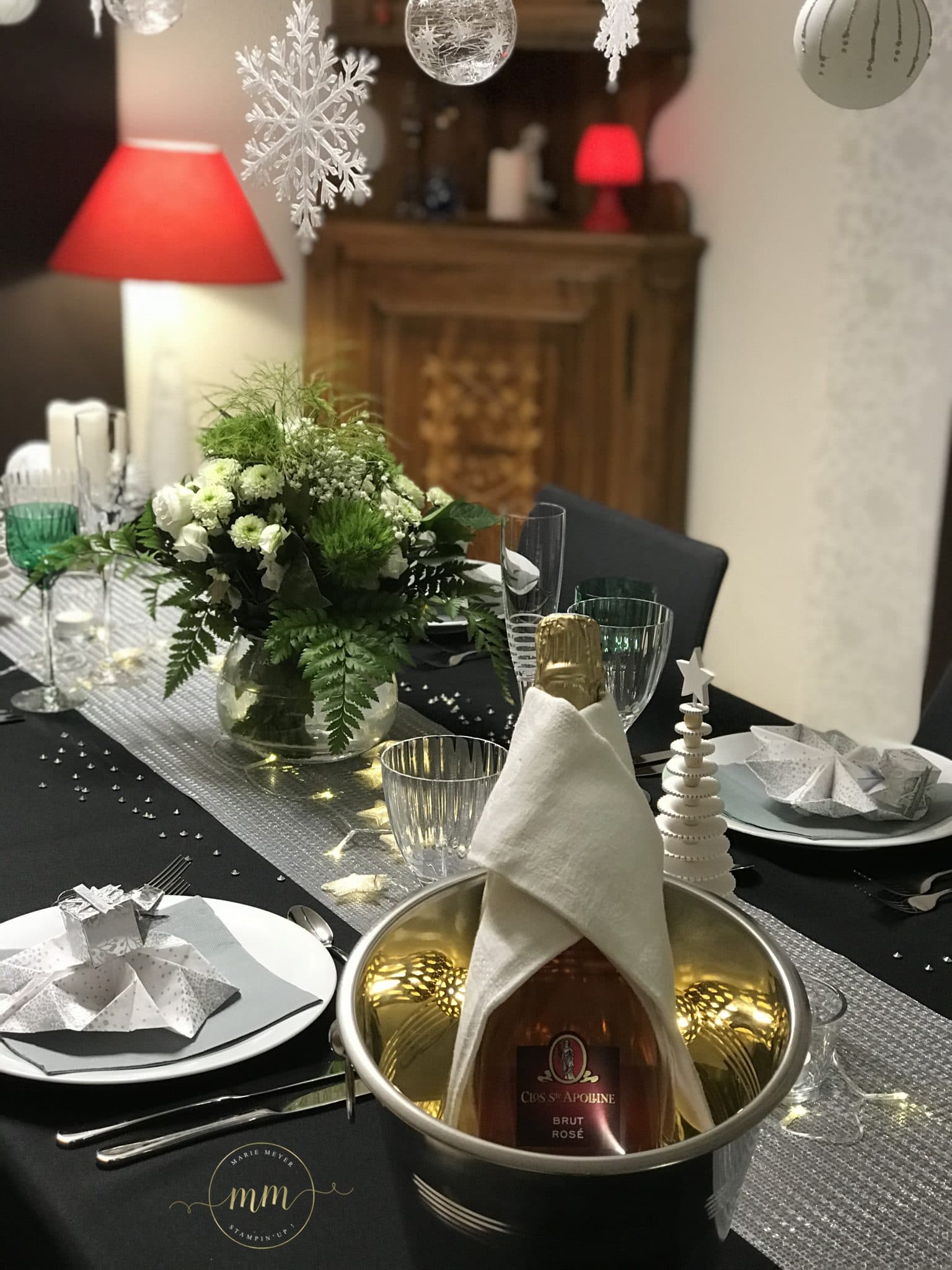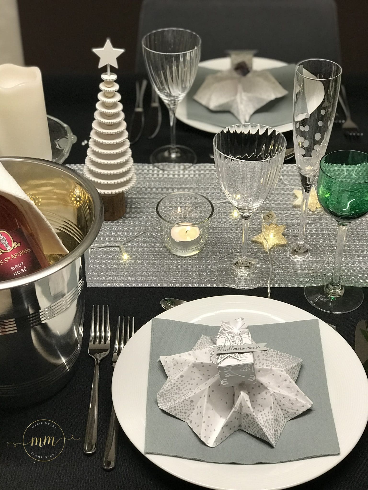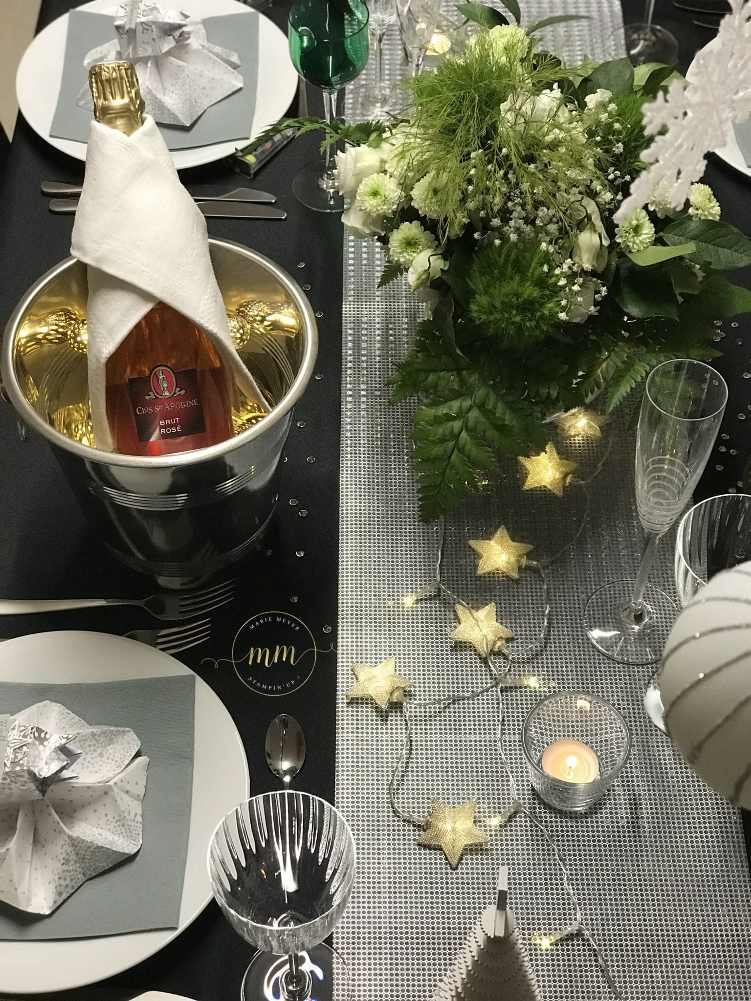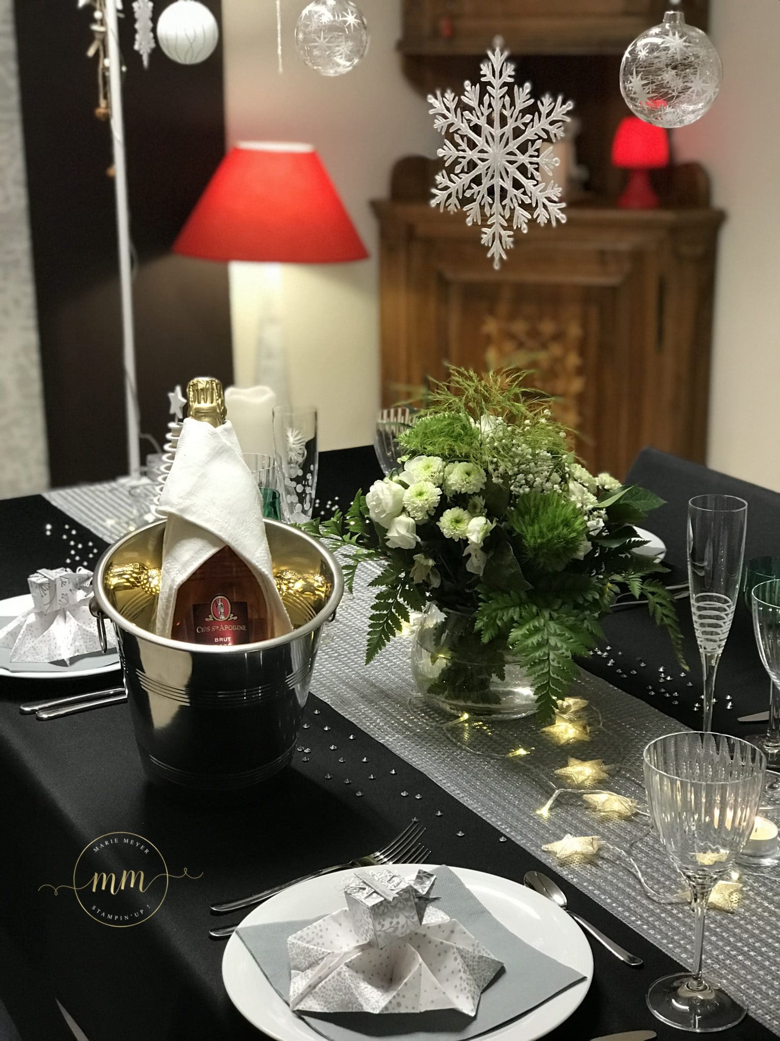 Et voici ce que vous obtenez sur la table de Nouvel An avec un pliage de serviette en forme de flocon, réalisé par ma fille :