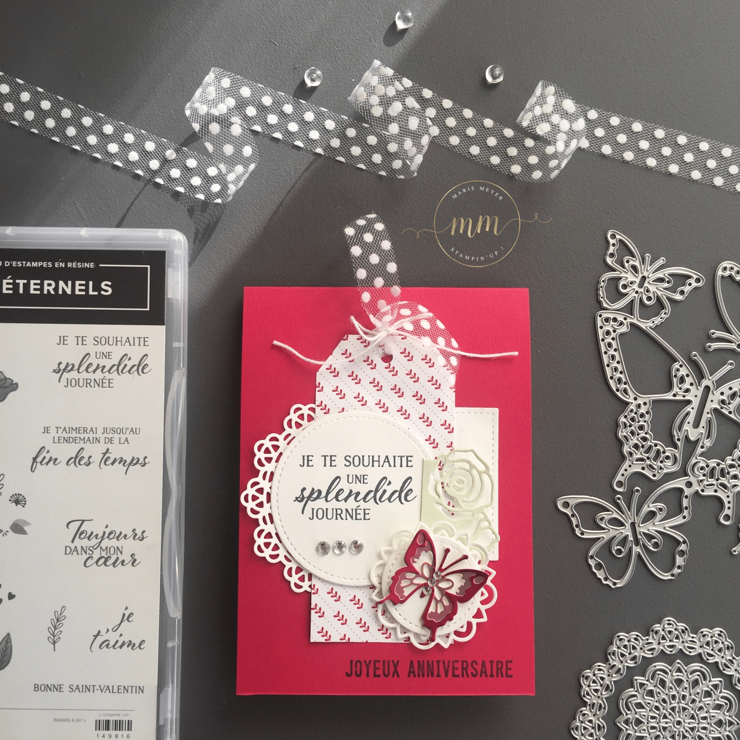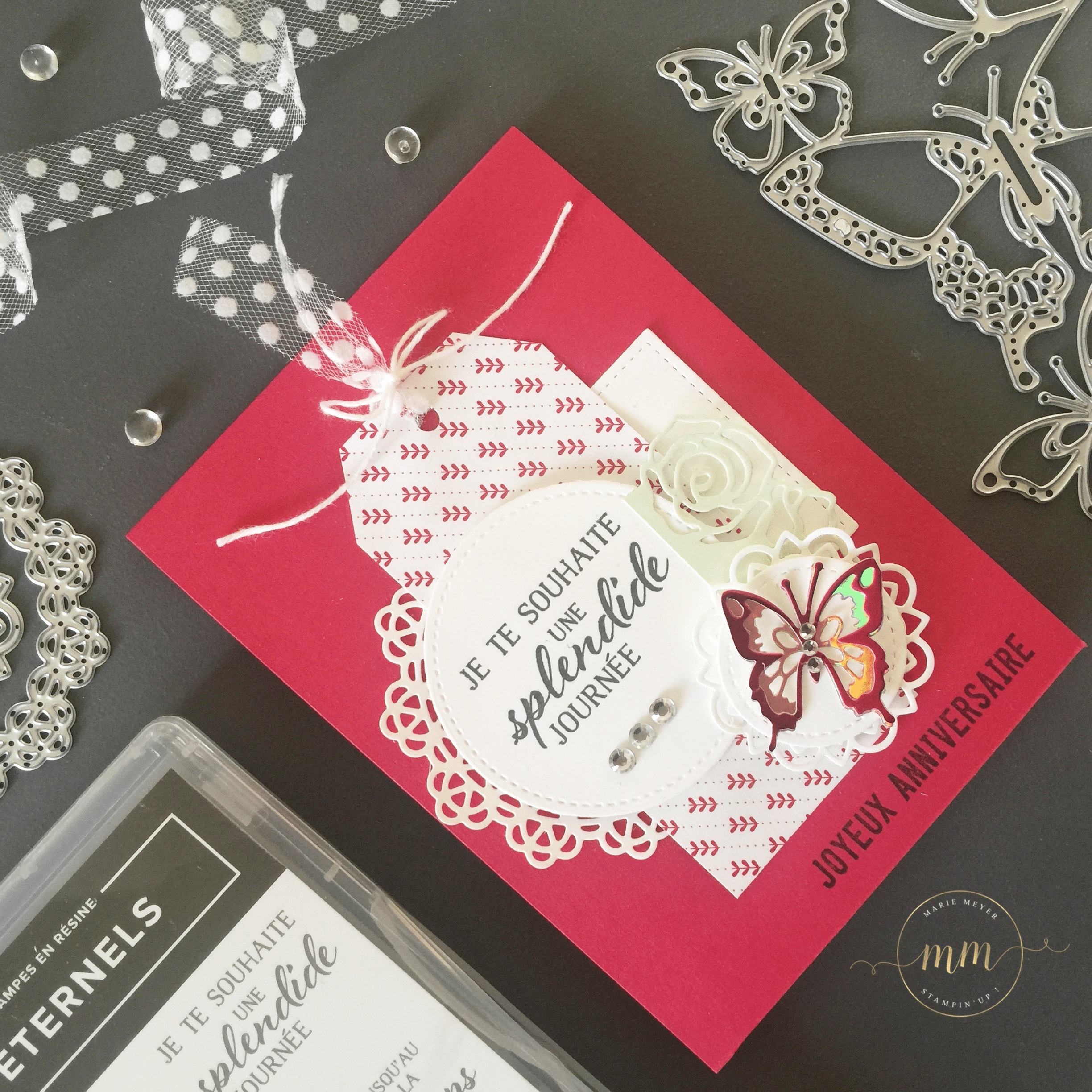 Carte anniversaire pop up Sentiments Eternels – Cartes d’anniversaire, Cartes pop up, Edgelits Fleurs charmantes, Framelits Formes à coudre, Papier Design De tout mon coeur, Set de tampons Célébrations Spéciales, Set de tampons Sentiments Eternels, Set de tampons Tout petits anniversaire, Stampin up, Thinlits Beaux papillons, Thinlits Mes napperons par Marie Meyer Stampin’up – http://ateliers-scrapbooking.fr