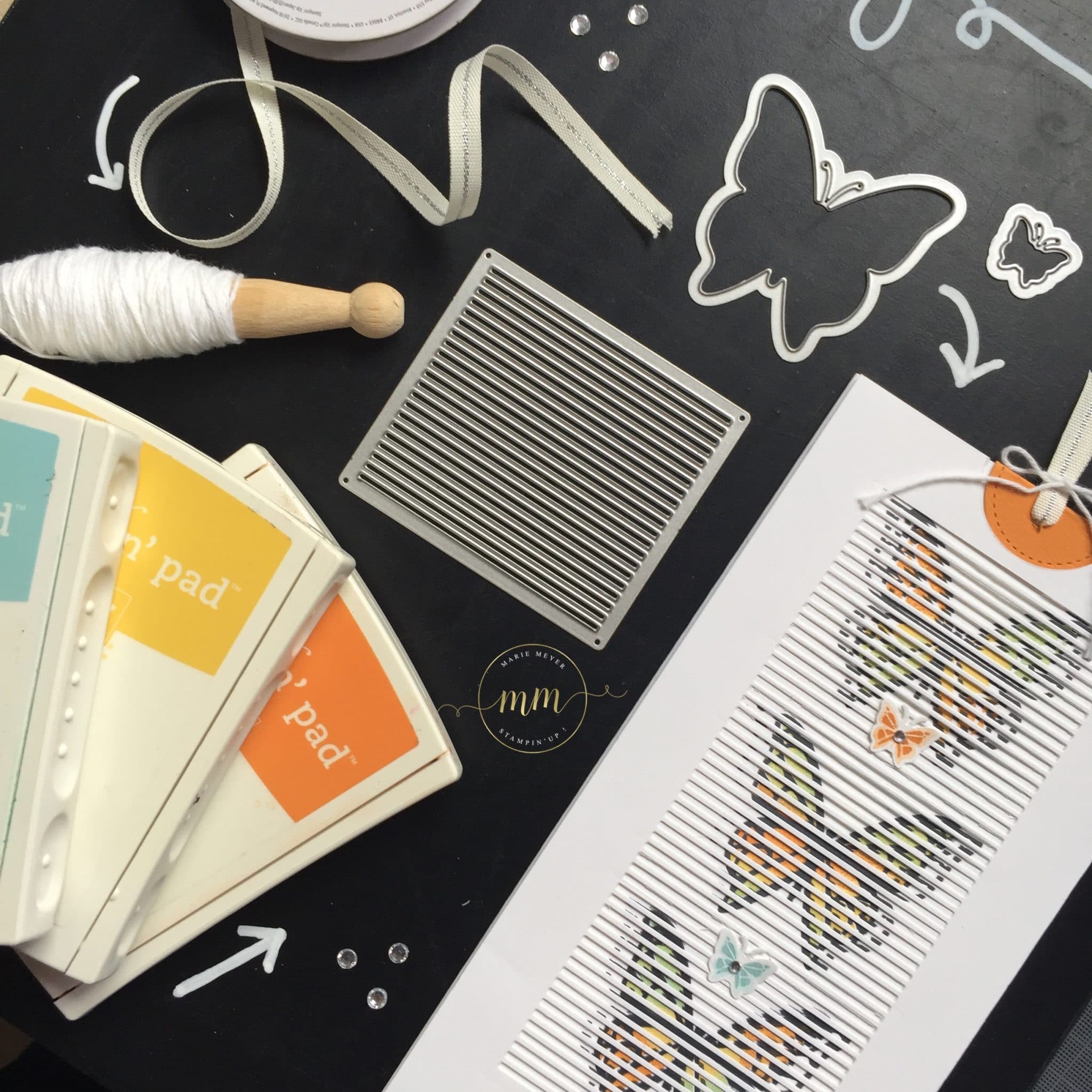 Pour revenir à ma carte d’anniversaire interactive Thinlits en mouvement, j’ai utilisé le papillon (pour le colibri… vous le verrez dans mon prochain article 😉 :