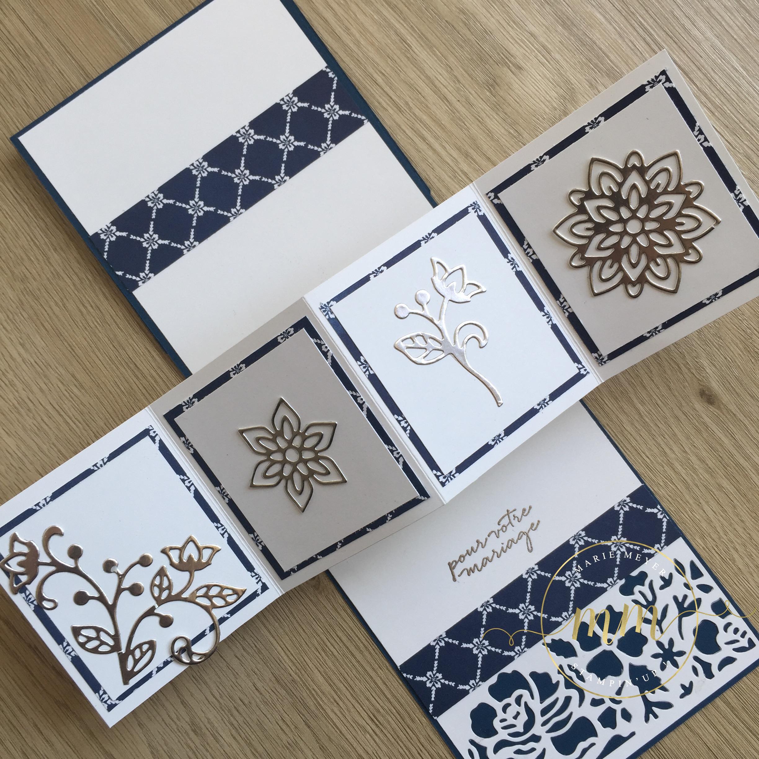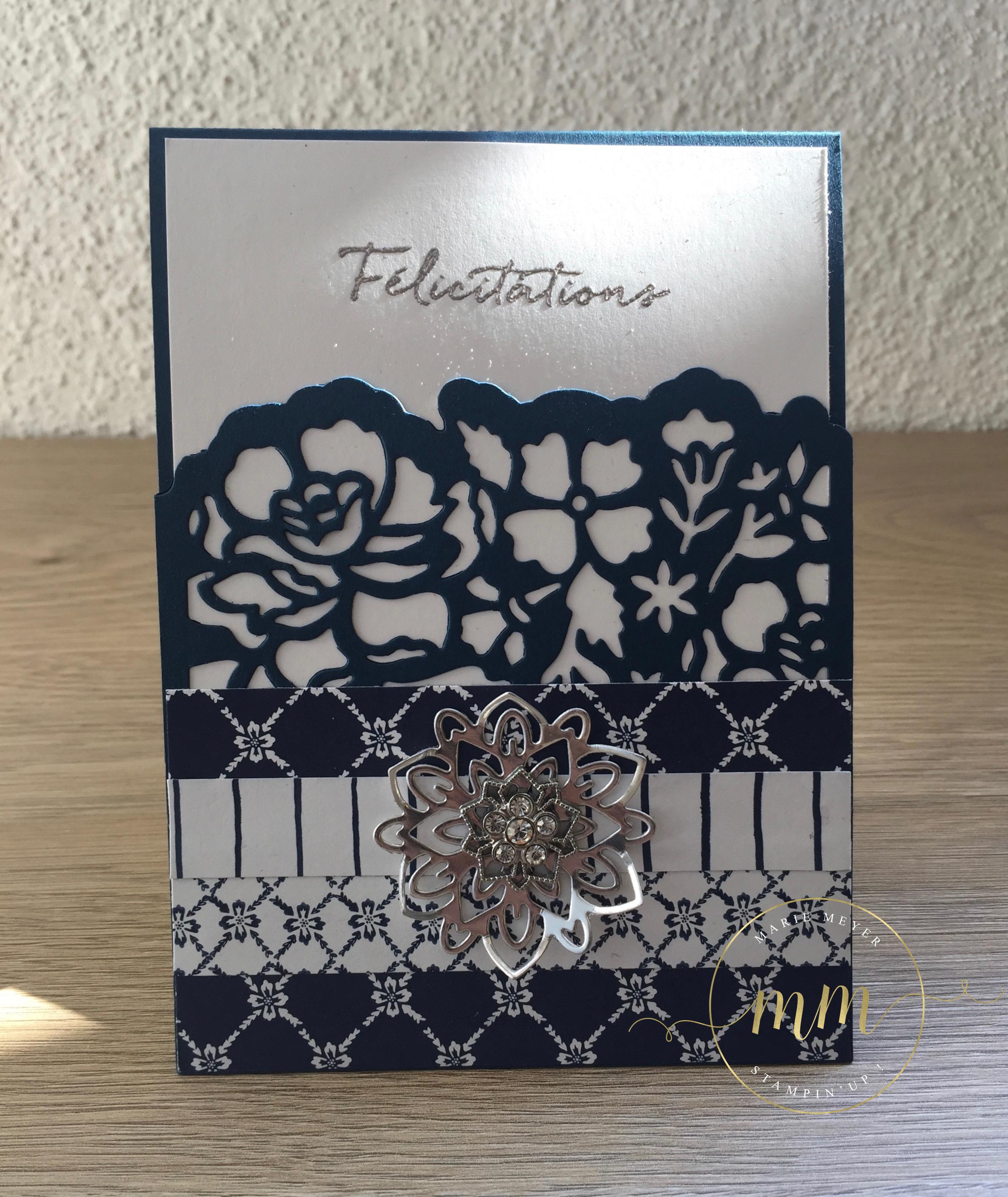 J’ai beaucoup aimé réaliser cette carte, car elle regroupe plusieurs techniques telles que l’embossage à chaud et l’utilisation de la big shot avec le dies Fleurs Ouvragés et le dies En fleurs. Il y a également le papier Boutique fleurie qui est absolument magnifique !