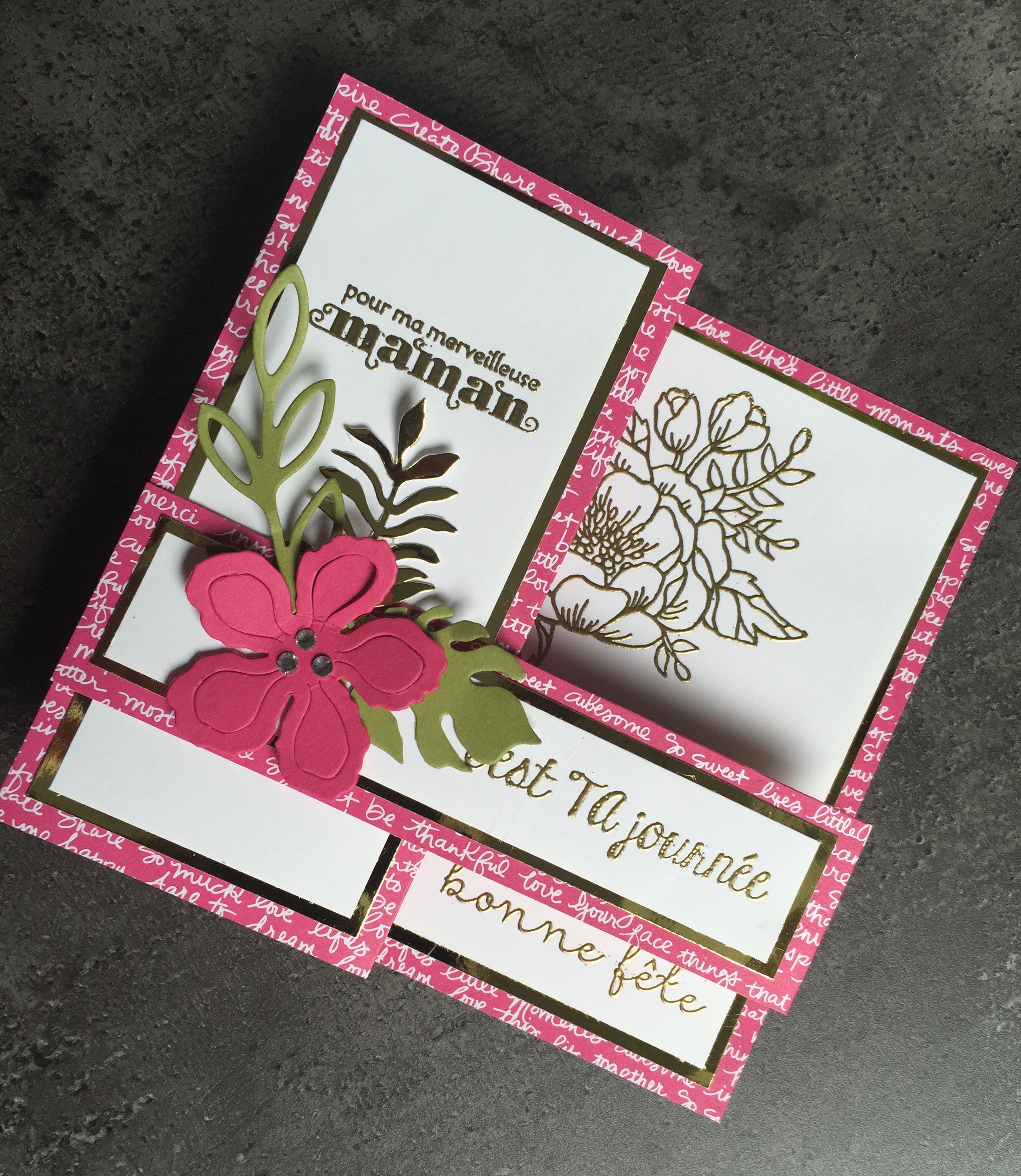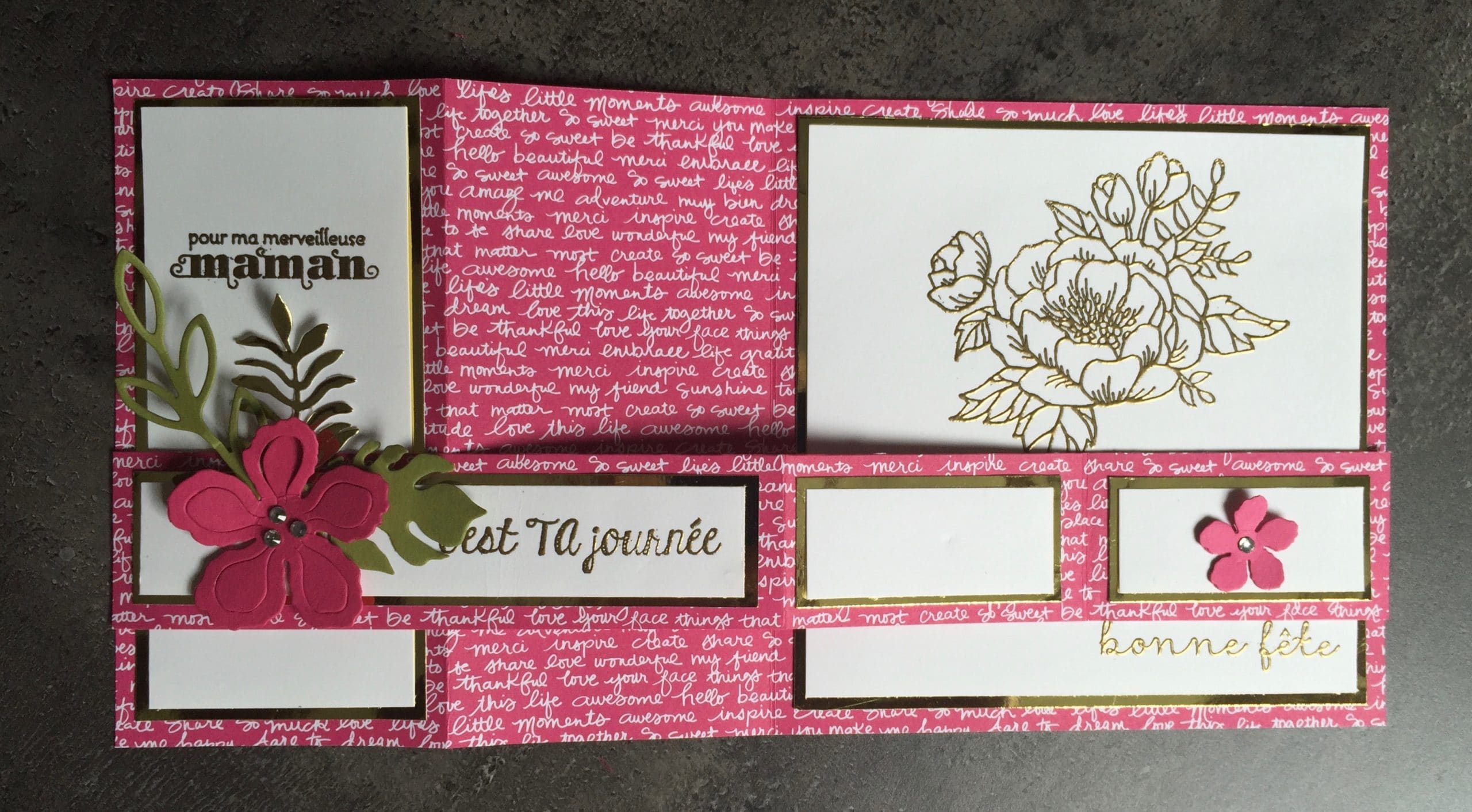 Et enfin, à mon tour, de vous présenter la carte que j’ai offerte à ma Maman adorée : une carte dite « double Z »