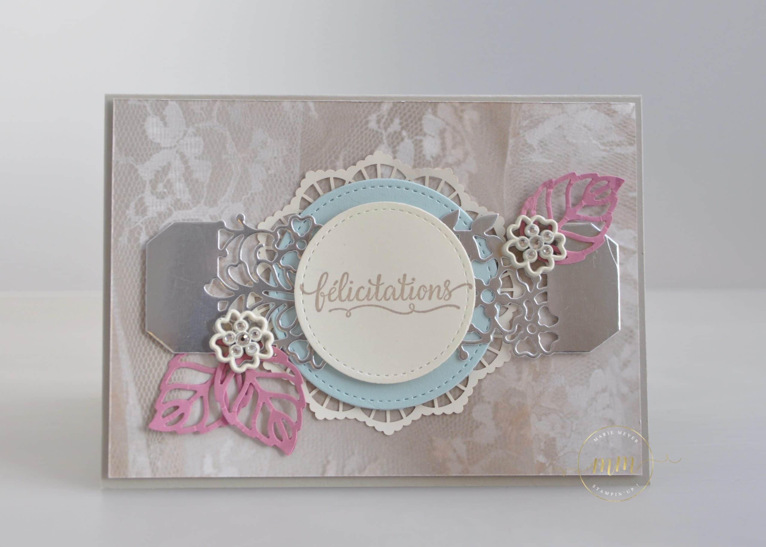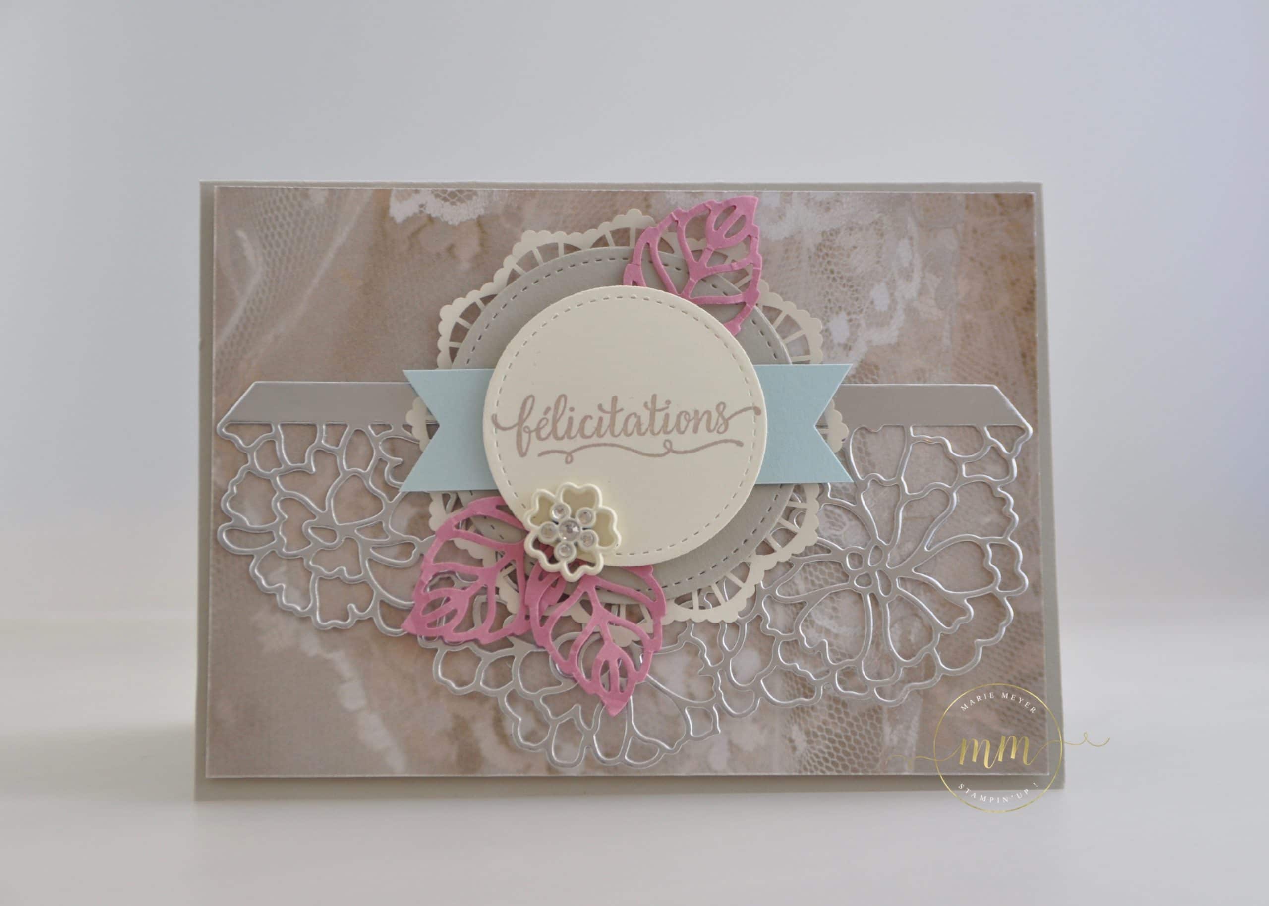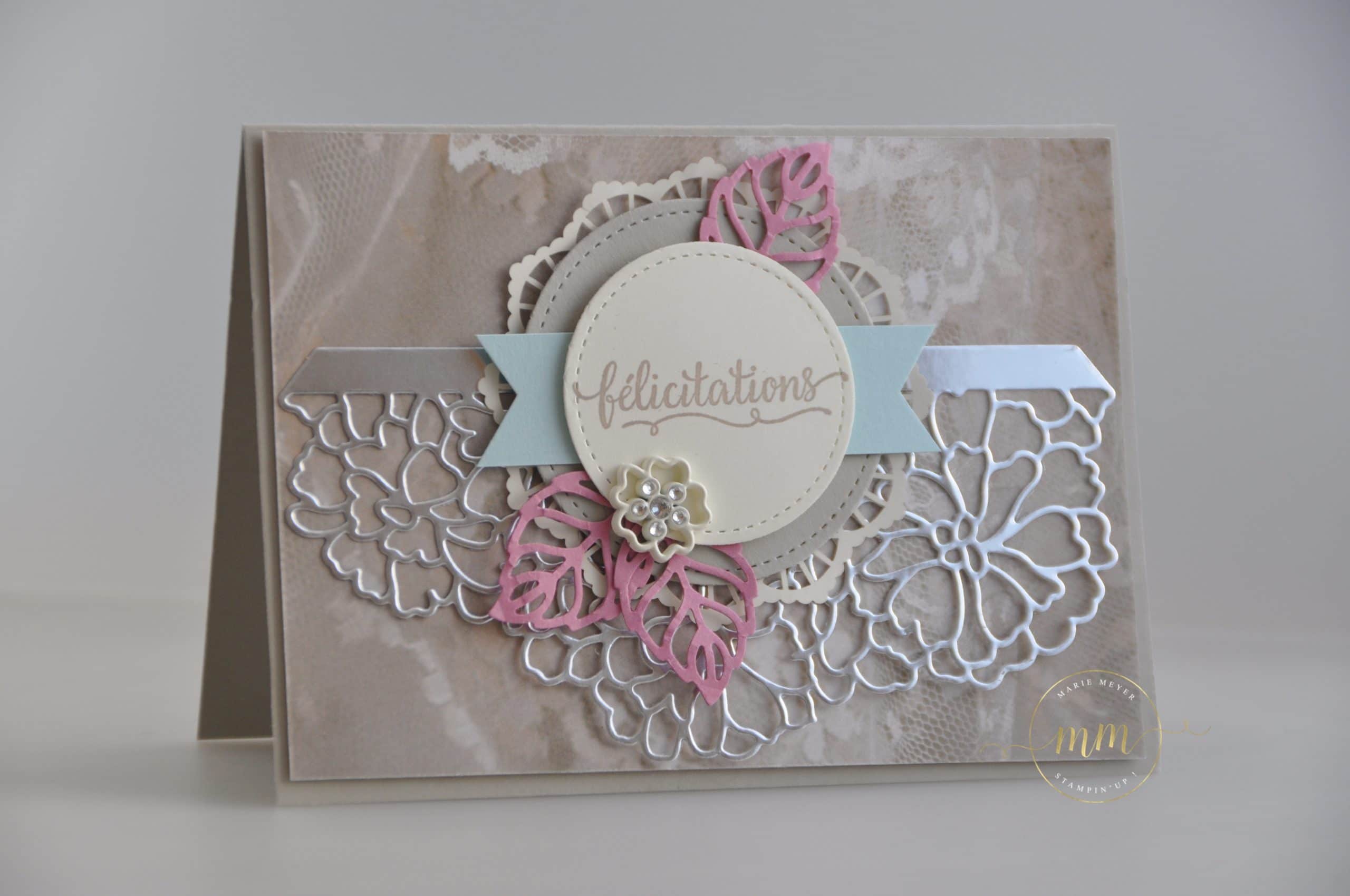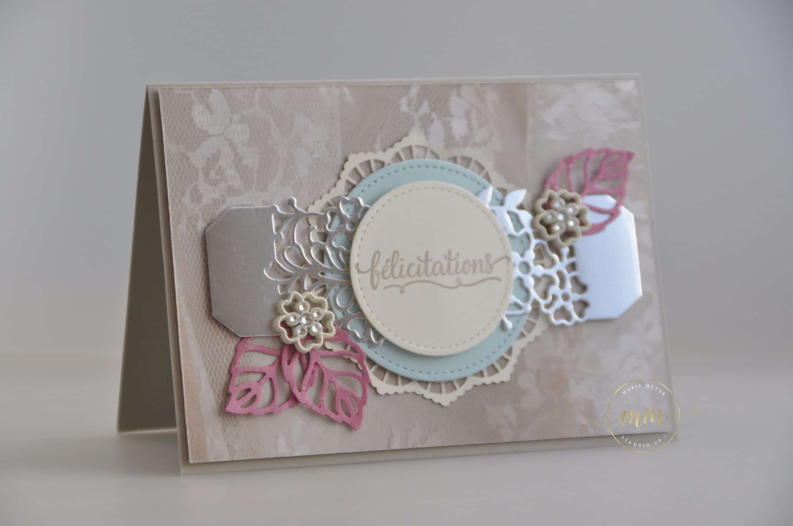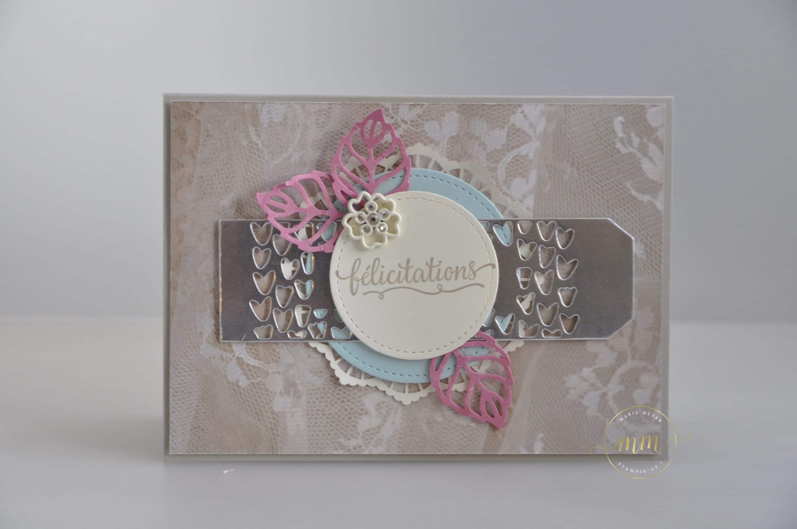Si vous avez adoré mon post précédent, celui-ci vous plaira également ! Je vous propose de découvrir une autre série de cartes de félicitations de mariage toujours avec le Thinlits En détails ainsi que le papier de la série Design Amour naissant de notre Catalogue Printemps Eté. Ces produits sont juste superbes et classes ! Je suis trop fan !