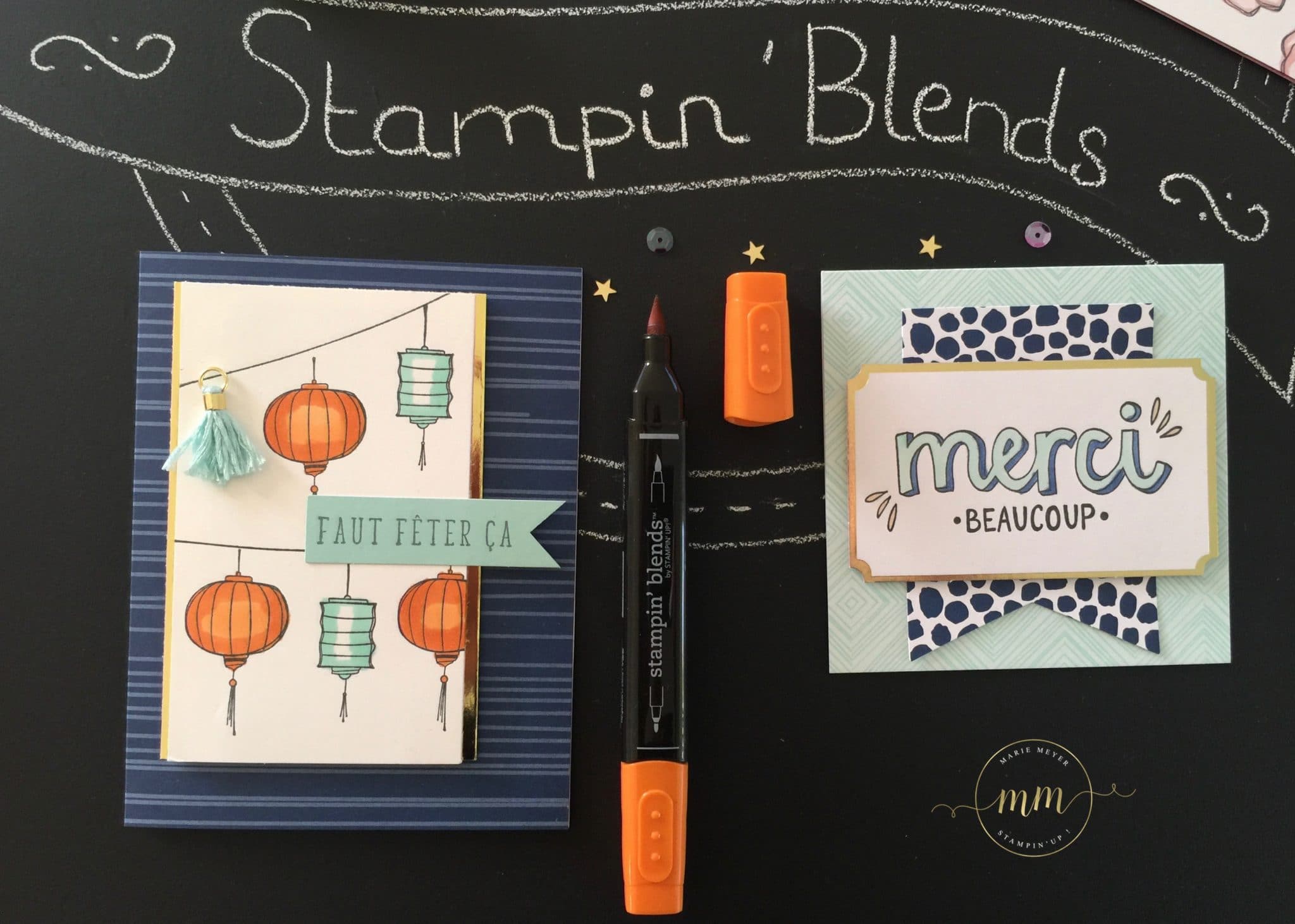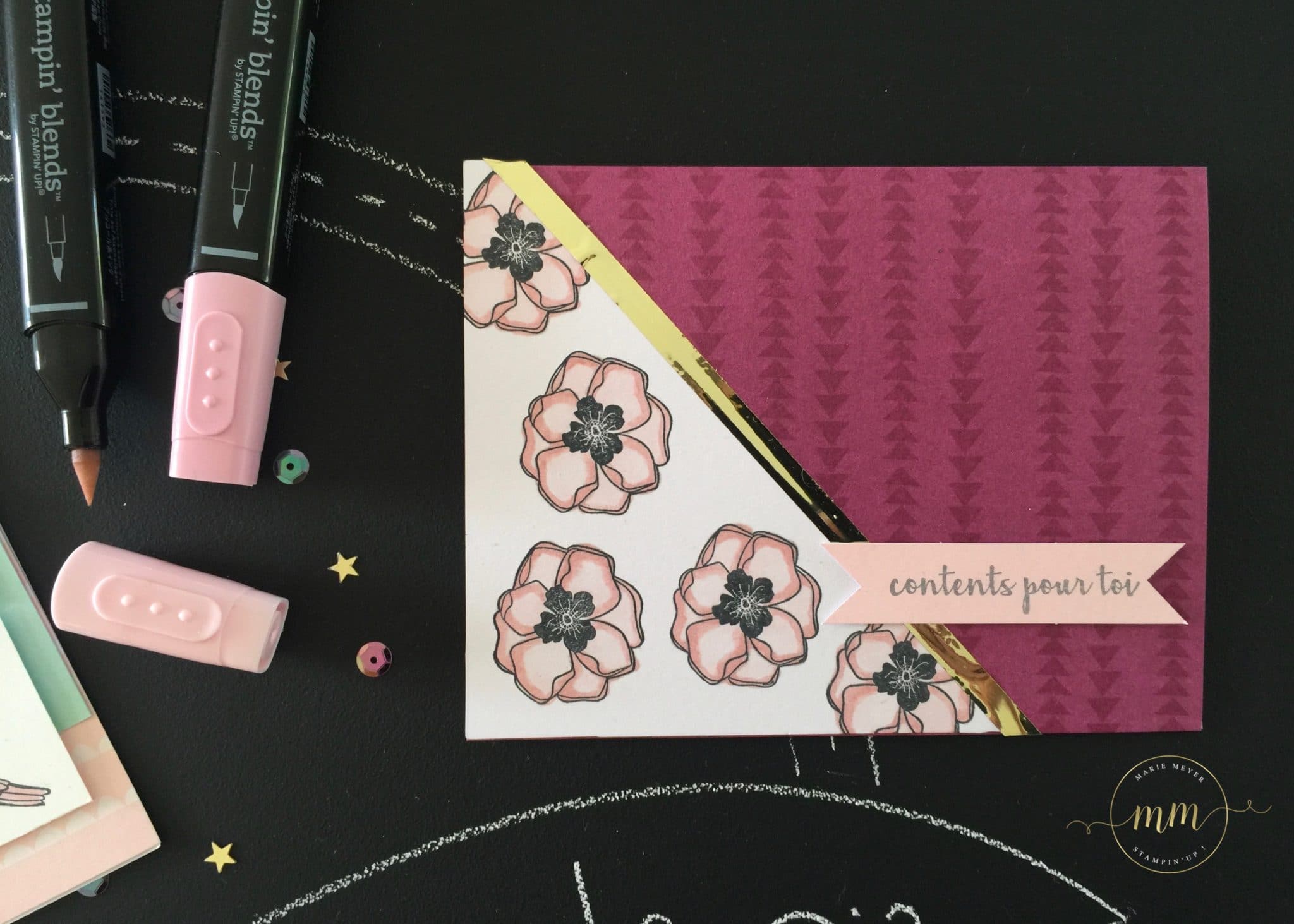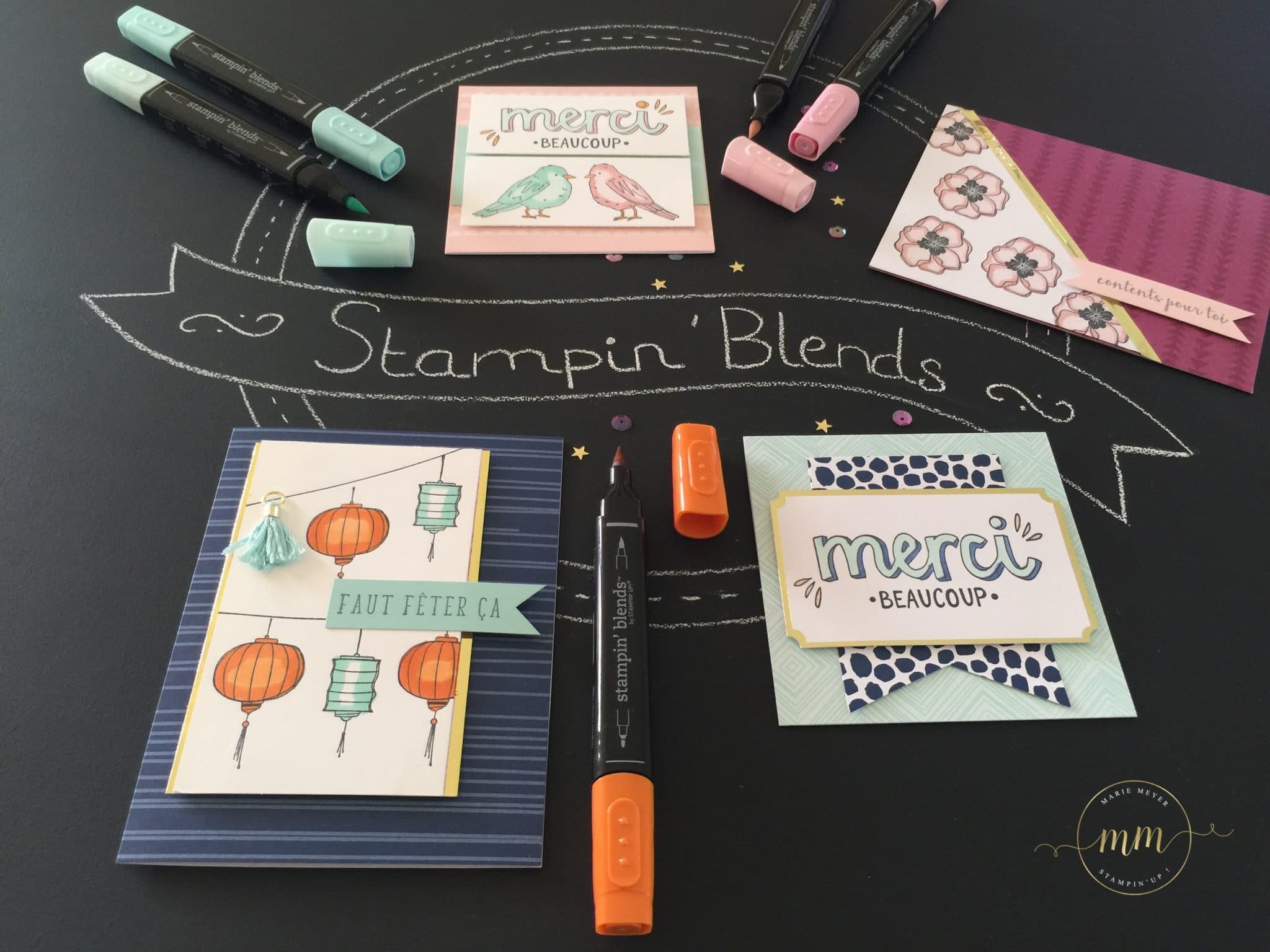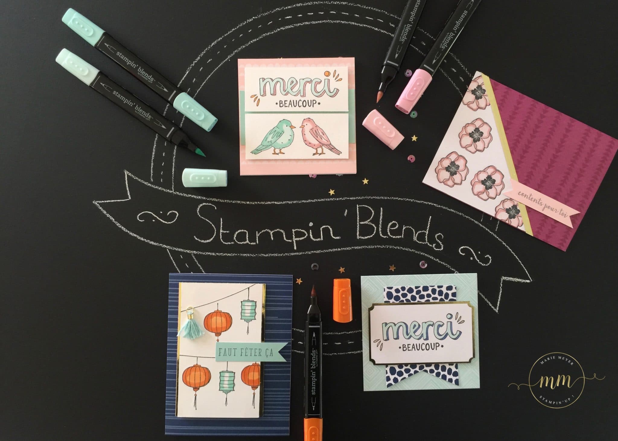 Comme promis lors de mon dernier post, voici quelques cartes du Kit de projet couleur bonheur et nos Stampin’blends !