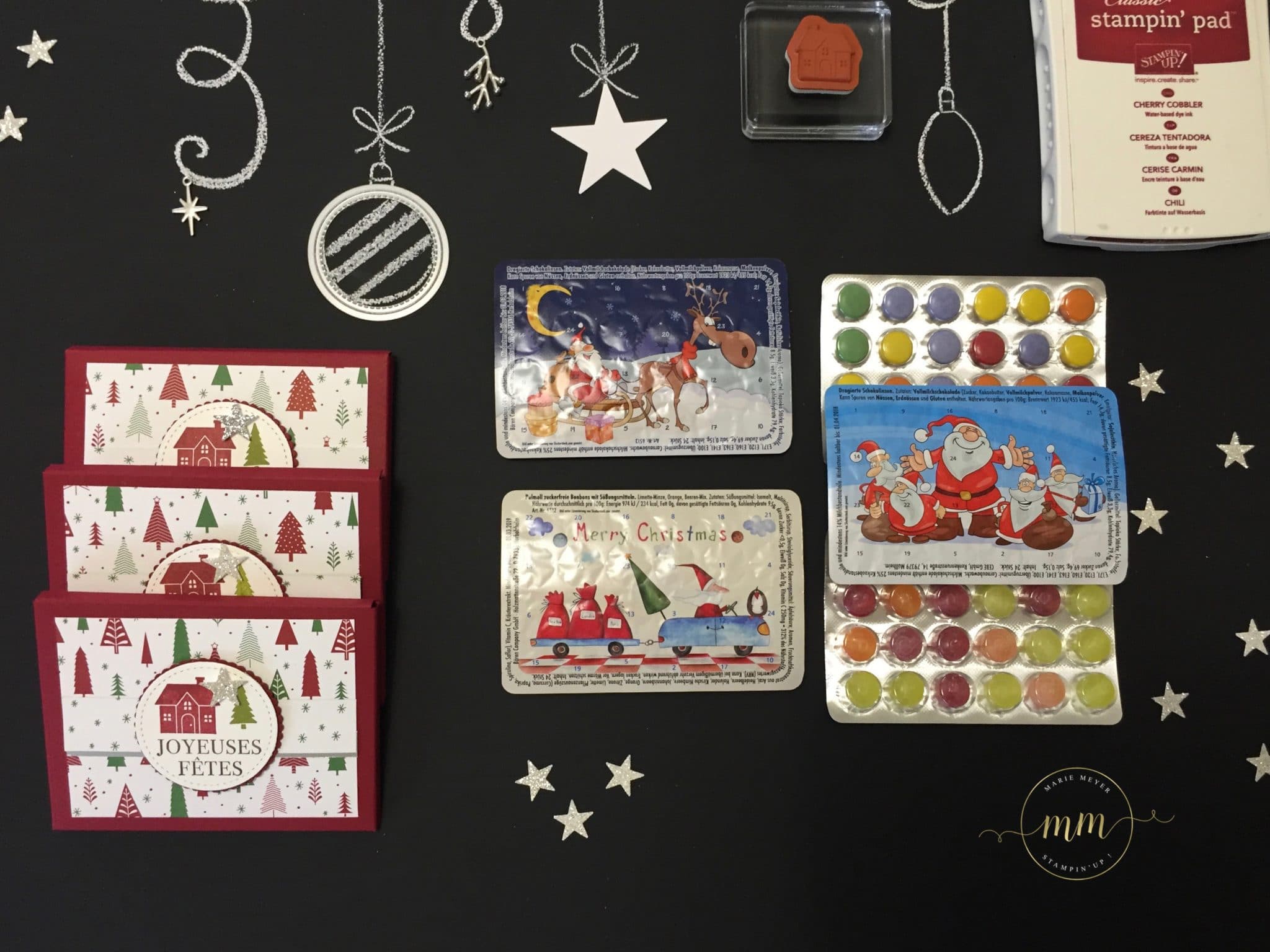 Cette année, j’ai offert à toutes mes clientes sans exception, des minis calendriers de l’avent de poche que j’ai fais spécialement venir d’Allemagne puisqu’en France vous ne trouverez pas ces produits ! En effet, je suis toute fière de vous annoncer que je suis la PREMIERE démonstratrice Stampin up française à « importer » ces petits trésors… hi hi hi !!!! Mais celles qui me connaissent, savent que j’adore surprendre les gens qui m’entourent et je n’hésite pas à franchir certaines frontières, hi hi hi !!!!