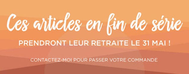 Comme chaque années, des produits des catalogues 2016-2017 et printemps-été 2017 se préparent à prendre leur retraite, et je vous invite donc à découvrir dès que possible les Promotions – Fin de série – Liquidation de certains articles Stampin up avec des remises pouvant atteindre 50 % et ceci jusqu’à épuisement des stocks. Cette promotion commence dès ce soir et se terminera le 31 mai 2017. Pour commander et être sûre d’avoir vos produits, je vous conseille d’utiliser ma boutique en ligne ici (utiliser chrome pour vous faire traduire les pages) et de passer votre commande le plus rapidement possible, car les premières arrivées seront les premières servies !
