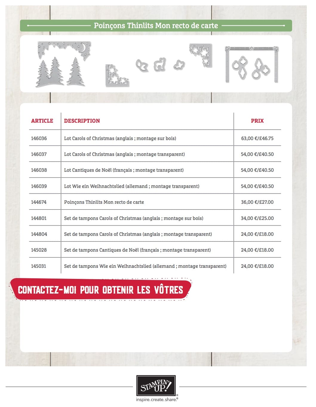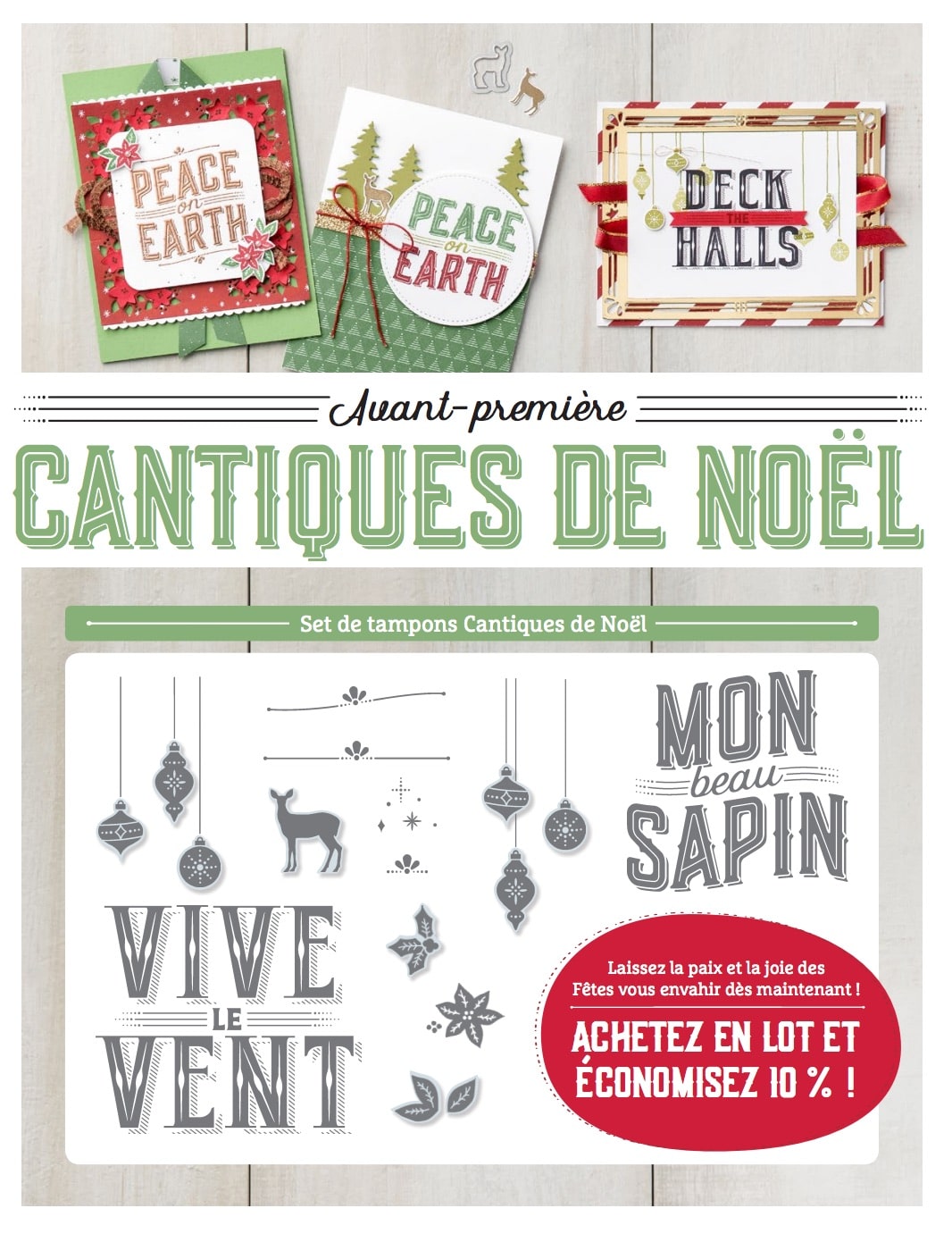 Vous recevrez aussi gratuitement le set de tampons Cantiques de Noël (du catalogue automne/hiver) !